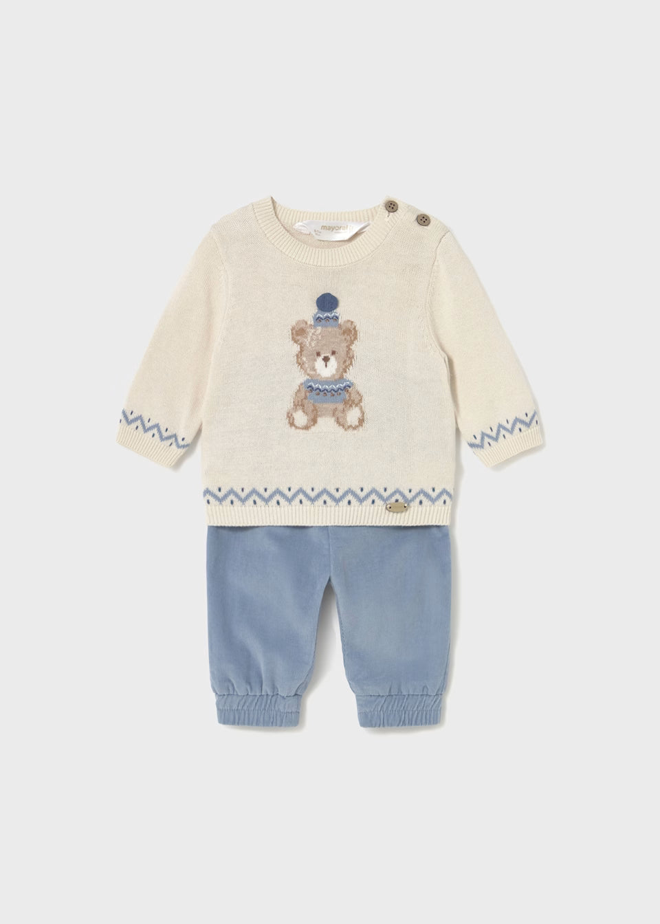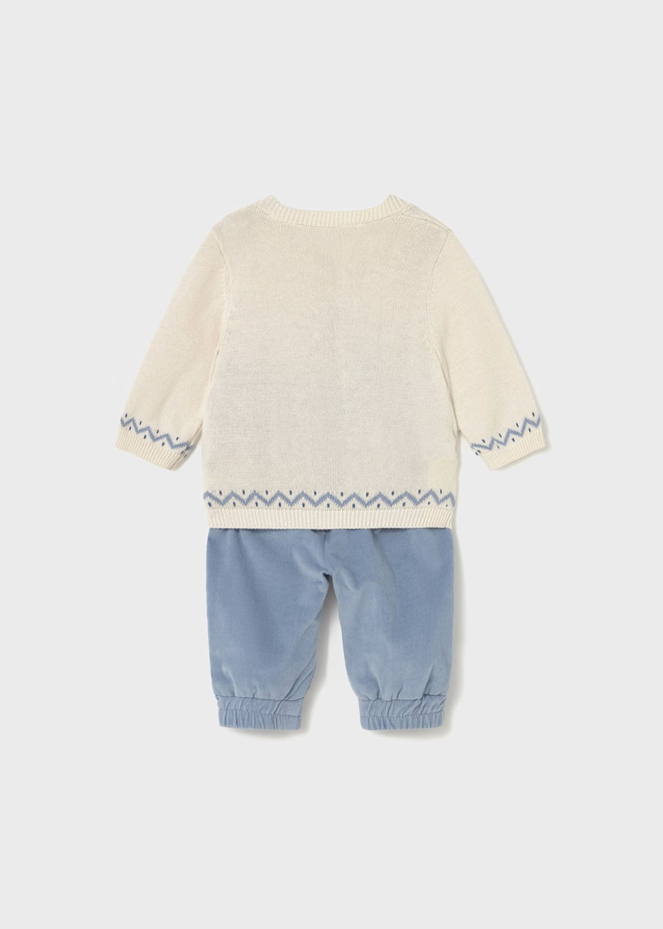 Dress your little one in cozy comfort with this adorable two-piece set featuring a soft long-sleeved sweater and coordinating pants. The sweater boasts a charming round neckline with convenient shoulder...