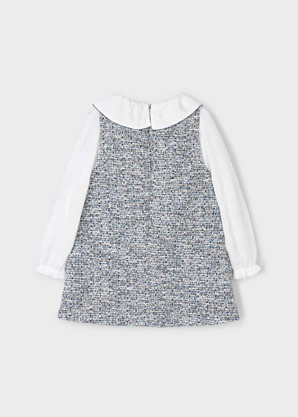 Long-sleeved dress for girls with elasticated inner cuffs. Baby collar. Back zipper closure for quick and easy dressing. Made from a combination of different fabrics to create a unique and...