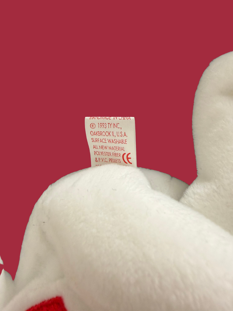 Very rare "Valentino" Ty Beanie Baby with swing and tush tag, in near mint condition. This baby was preserved in a clean plastic bag inside a clean plastic box. Contains...